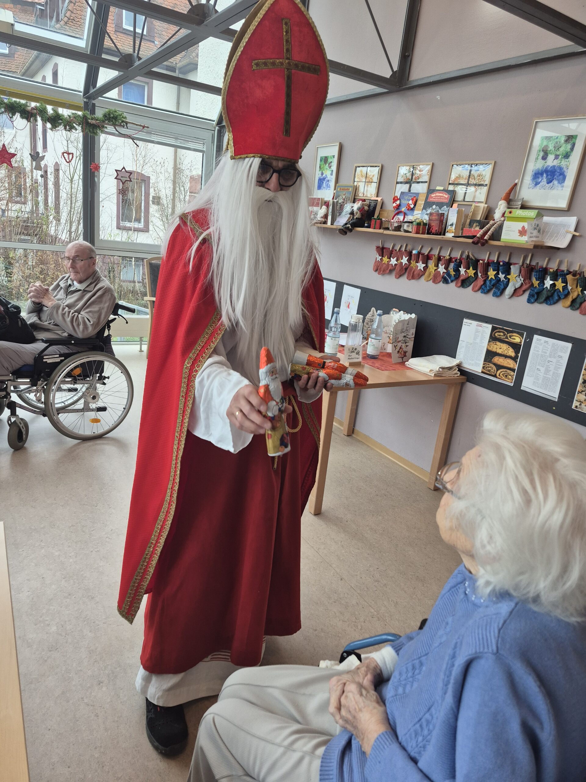 Am Vormittag des 5.12,kam der Nikolaus zu uns ins Haus. Die Bewohner hatten Lieder und Gedichte geübt. Die Rute ließ der Nikolaus im Sack und überraschte die Bewohner mit Mandarinen [...[