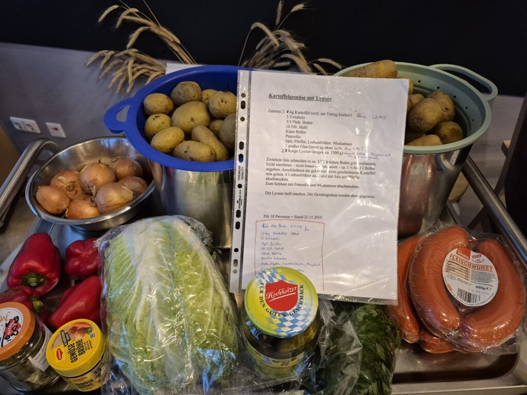 Eines der Lieblingsrezepte unserer Bewohner wurde gekocht, Kartoffelgemüse mit Lyoner mit leckerem frischen Salat. Viele Bewohner halfen tatkräftig mit und konnten dabei viel erzählen vom eigenen Speiseplan zu Hause. Das gemeinsame Essen war wie immer ein Genuß und der Appetit ist deutlich größer, wenn vorher selbst das Essen zubereitet wurde.