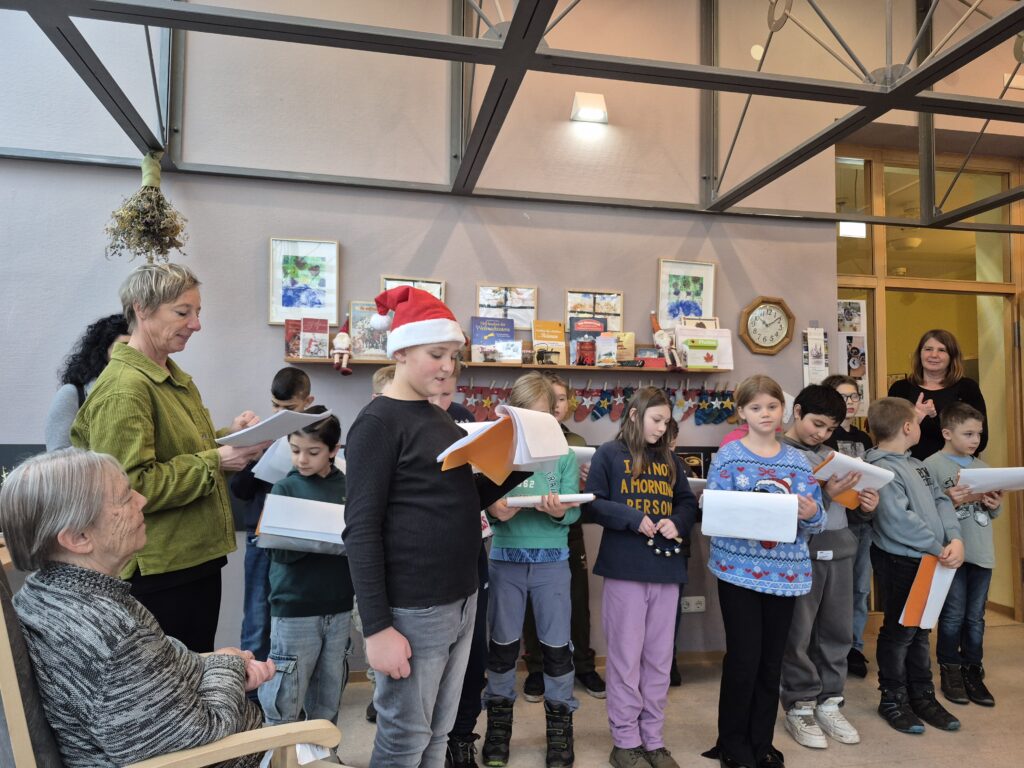 Mit viel Vorfreude wurden die Schulkinder der AG Singen, der saaletalschule von den Bewohnern erwartet. Es wurde uns ein fröhliches vorweihnachtliches Konzert geboten mit vielen Liedern zum mitsingen und Klatschen. Wie im Flug verging der Vormittag und alle hatten viel Freude. Am Ende erhielt jeder Bewohner eine selbstgebastelte Weihnachtskarte, da floss so manche Freudenträne.